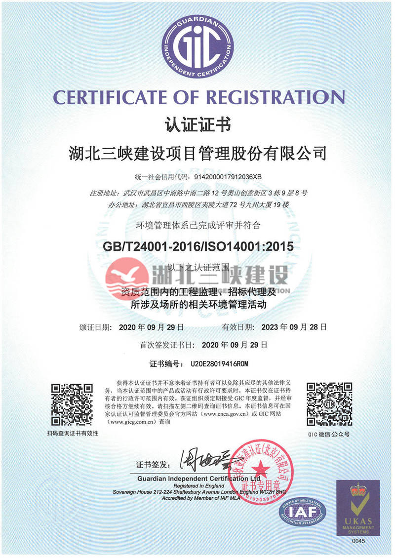 環(huán)境管理體系認(rèn)證證書
