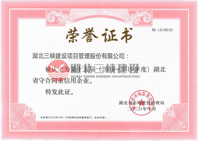 | 第十五屆(2018-2019年度)湖北省守合同重信用企業(yè) |