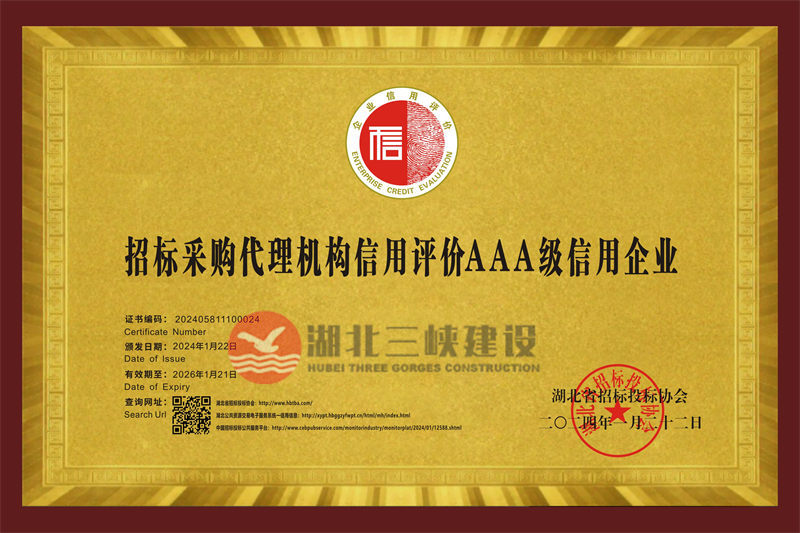 | 招標(biāo)采購代理機(jī)構(gòu)信用評(píng)價(jià)AAA級(jí)信用企業(yè) |