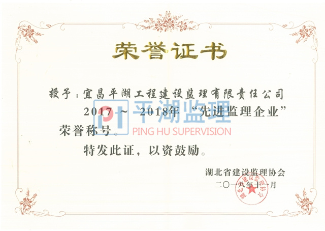 | 2017-2018年度湖北省先進(jìn)監(jiān)理企業(yè) |