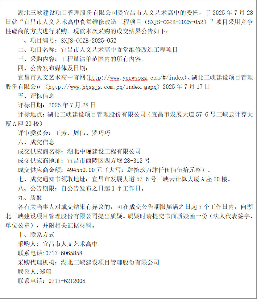| 宜昌市人文藝術(shù)高中食堂文化建設項目成交結(jié)果公告 |