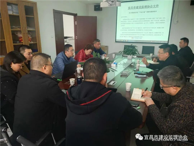 2021年4月7日下午,宜昌市住房和城鄉(xiāng)建設(shè)局總工程師袁慶華、建設(shè)管理科副科長何超蒞臨協(xié)會指導(dǎo)以“宜昌建造”為主題的“平安工地”創(chuàng)建實(shí)施細(xì)則的推進(jìn)工作會。我會會長孫秀麗、常務(wù)副會長盛斌、黨支部書記鄭曉濤、副會長陳謙、吳天亮、肖勇、監(jiān)事長付宇東、秘書長杜穎參加了工作會議。