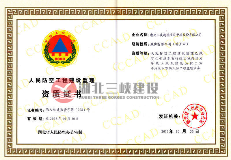 人民防空工程建設監(jiān)理資質(zhì)證書