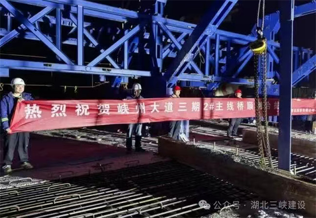 | 峽州大道三期市政工程2號主線橋左幅主跨懸臂箱梁順利合龍 |